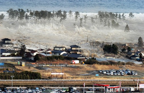 El 11 de marzo, a las 14.46 horas (hora local), un terremoto con una magnitud de 9,0 grados azotó la costa de Tōhoku, al noreste de Japón, lo que provocó un enorme tsunami. A pesar de que los diques de contención estaban colocados en su lugar, las olas del tsunami de Tōhoku (en ocasiones de un tamaño de hasta tres veces el de los diques) rompieron por encima de ellos, lo que provocó que muchos se derrumbaran. Las inundaciones alcanzaron los 10 km hacia el interior, lo que causó la destrucción de más de 45.000 edificaciones y el daño a unos 230.000 vehículos. Debido a que las infraestructuras quedaron muy afectadas, las operaciones de recuperación y búsqueda de supervivientes fueron tremendamente difíciles. Once meses más tarde, el total de fallecidos ascendía a 15.848, mientras que el de desaparecidos se situaba en 3.305 personas. El tsunami dañó una parte de la central nuclear de Fukushima Daiichi, lo que llevó a su cierre y provocó un estado de alerta nuclear. La pérdida de acceso a la red eléctrica nacional llevó al país a sufrir diversos apagones para conservar la energía. El cierre de la actividad portuaria y los daños causados al sistema de transporte produjeron un grave impacto en la economía industrial y de exportación de Japón.