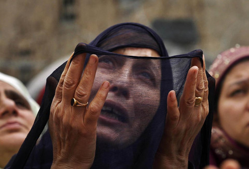 "A woman prayed on the anniversary of the death of Abu Bakr Siddiq, the first Caliph of Islam, at Hazratbal Shrine on the outskirts of Srinagar, India, Monday."