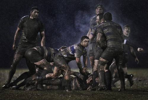 El medio de melé Conor Crowley, del Blackrock College, suelta el balón tras un ruck, durante un partido de rugby de la División 1A de la All-Ireland League contra el Old Belvedere, bajo una fuerte lluvia, el 5 de febrero, en Anglesea Road, estadio de este último. Ambos clubes de rugby tienen su base en Irlanda. Originalmente se constituyeron como equipos de antiguos alumnos de dos de las escuelas de la ciudad, pero en la actualidad están abiertos a todo el público. Old Belvedere ganó el partido 10-9 y se convirtió en el campeón de la liga.