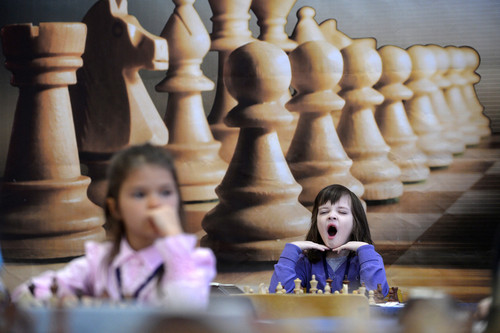 "Girls played chess at the Moscow Open 2013 Chess Festival in Moscow Friday."