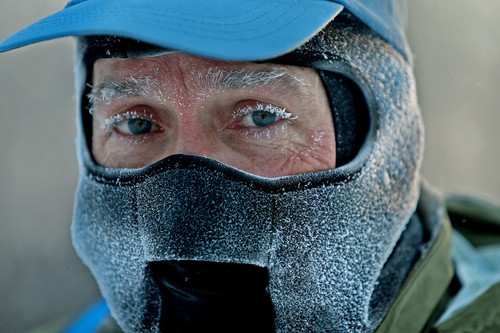 "John Brower’s eyelashes and eyebrows were covered in frost after he went for a run in frigid weather in Minneapolis Monday."