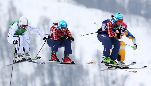 A francesa Ophelie David, as canadianas Kelsey Serwa e Marielle Thompson e a sueca Anna Holmlund competem na final feminina de Esqui em Estilo Livre, no Rosa Khutor Extreme Park nos Jogos Olímpicos de Sochi 2014, Russia.